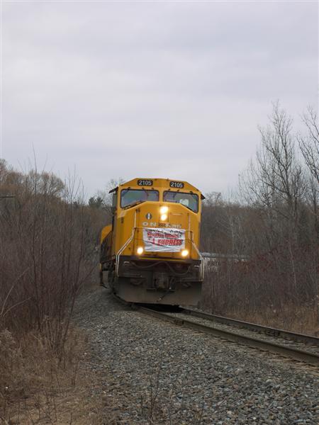 The 'Santa Claus Express' rounds a curve returning to North Bay.