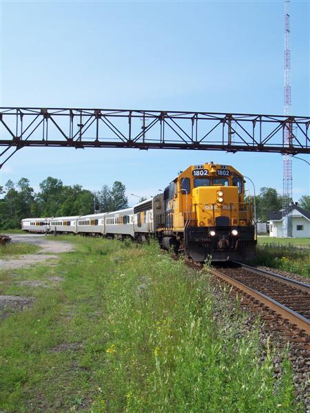 On the point of the 'Northlander' 1802 at the station. Thanks to the curve, we're able to get a shot of the whole consist.