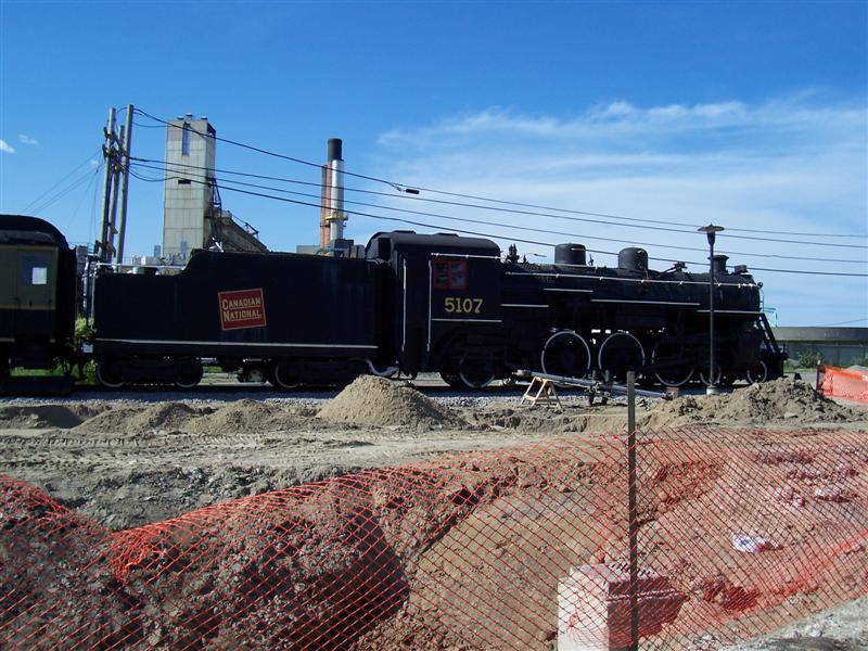 A 1919 built 4-6-2 heads up a display train sitting behind the Kapuskasing station. CN retired her in 1963, when it went to the Ontario Science Centre.