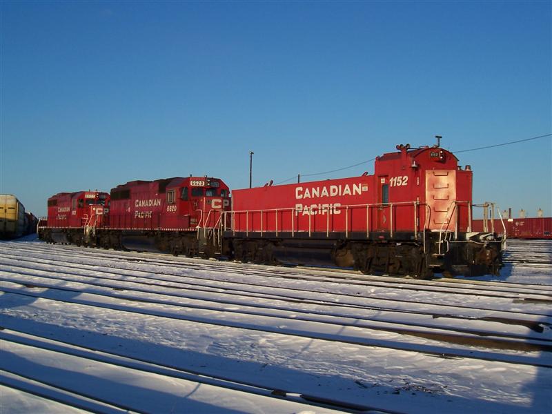 I had my camera with me at work this day, working the hump. Here's the hump set, ran by remote control. A former Soo GP9 leads former Soo SD40-2's 6620 and 6619 as it sits in the class yard.
