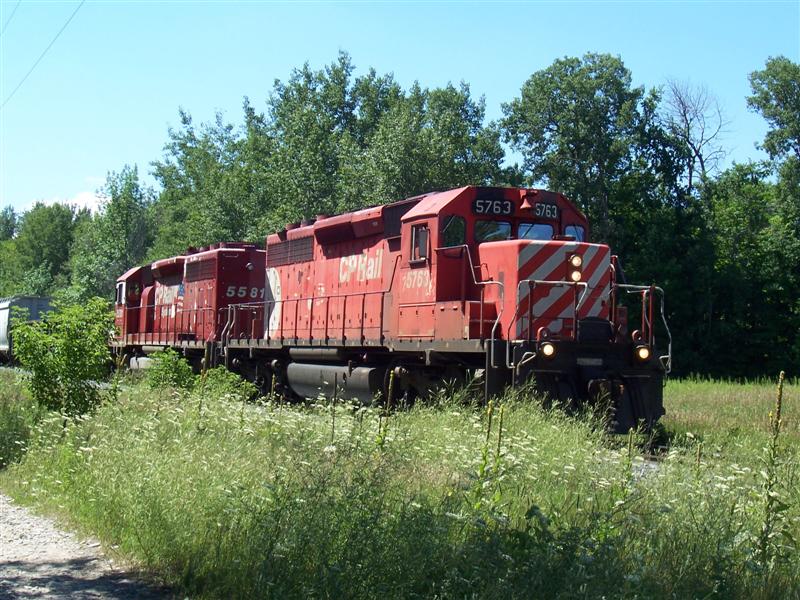 Leading train #435, CP 5763 and 5581 pull out of the Ypres Siding. With no work to do, the train will continue on to Mactier. 5763 is one of a dying breed, but it's amazing how many 'pac man' units are still out there.