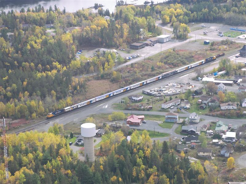 The 'Dream Catcher Express' as seen from a float plane high above Temagami.