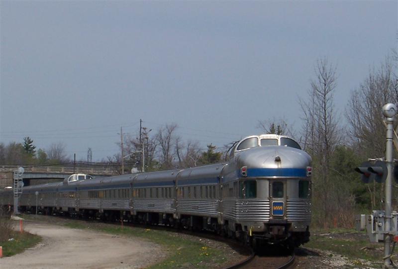 With 6433, 6435 and 6436 on the head end, Kokanee Park brings up the markers as the 'Canadian' pulls out of Washago. Today's train's consist as follows: