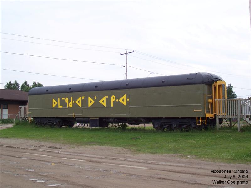 A former Ontario Northland baggage car (ex-402) now serves as a museum in Moosonee, just east of the station.