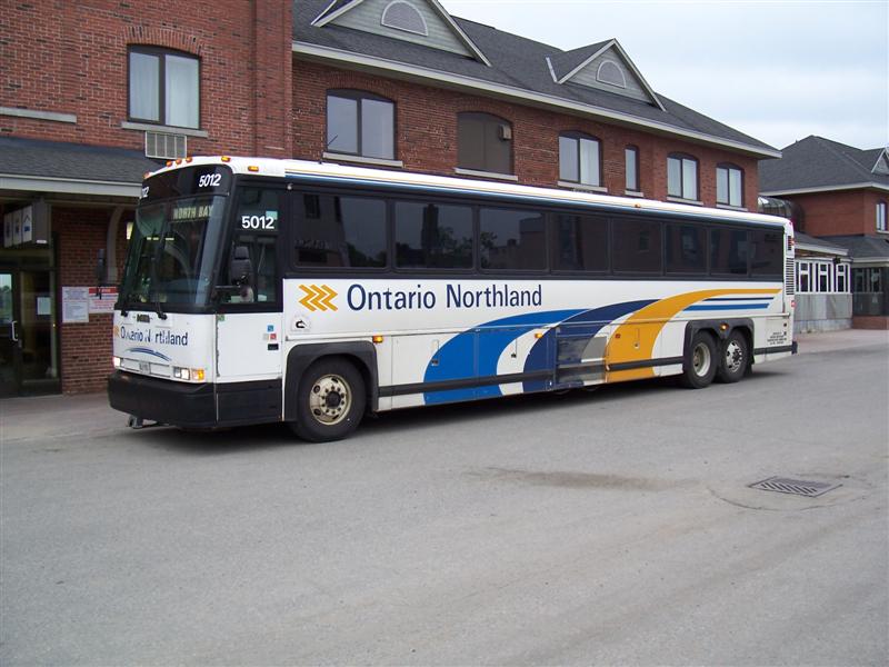 Preparing to depart Cochrane, coach 5012 picks up it's last few passengers for North Bay. ONRail and the Motor coaches are each a slice of the pie of the Ontario Northland Transportation Commission.