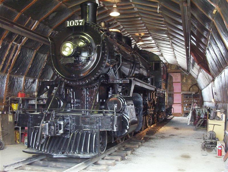 In the shops, 1057 is getting the final touches put on before being steamed up for the first time this season. Final touches include the number plate below the headlight.