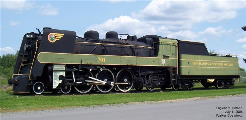 Sitting south of the station, 701 looks much like she did in the 1940's. The 701 had the honours of hauling the last steam train on the ONR in 1957.
