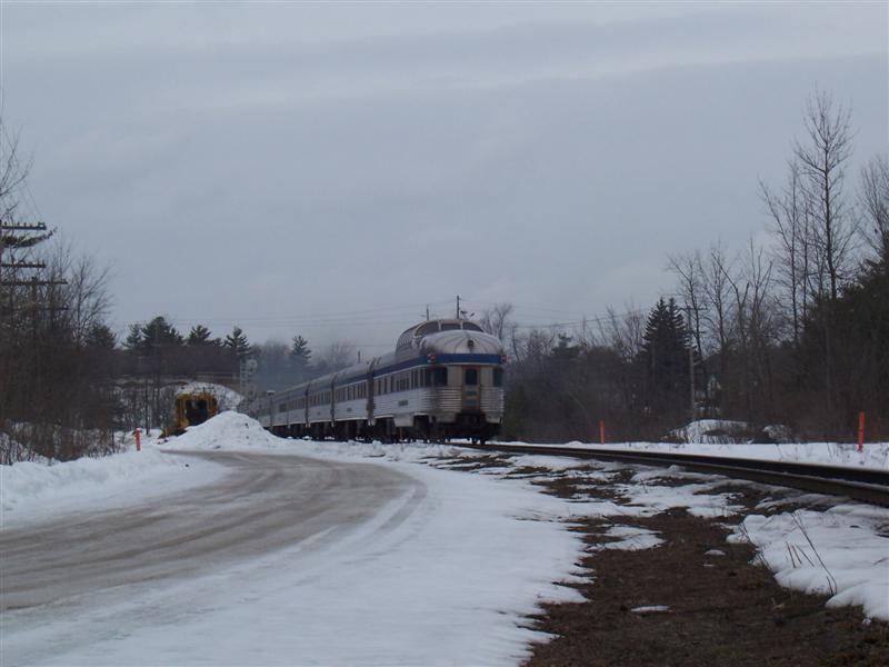 Bringing up the rear end of 'The Canadian' Tweedsmuir Park rolls westward from Washago. Lately, this park car has been assigned exclusively to the Canadian.