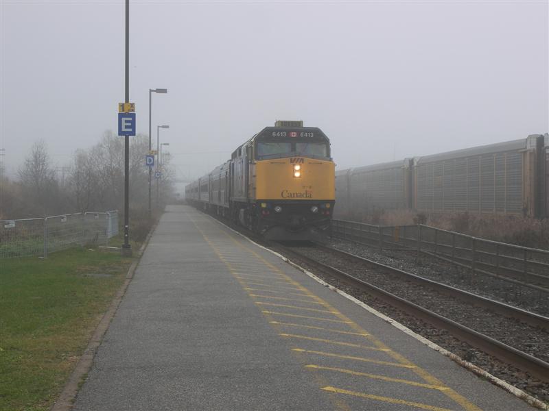 Via 6413 leads 6 Budds stopping at the Oshawa Station with train 57.