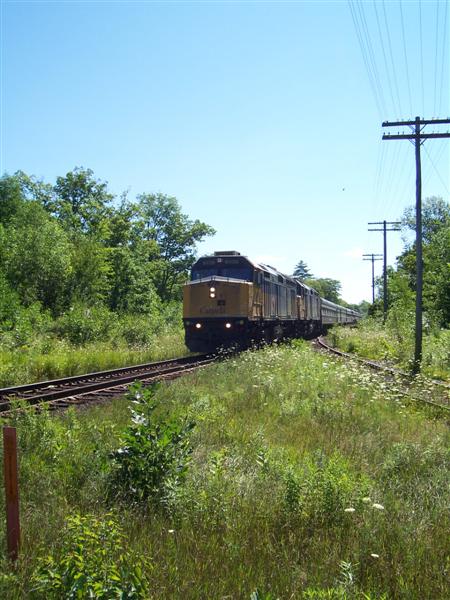 Right on time, #1 arrives in Washago. Today's train is pretty well loaded.