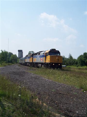 Running ontime, #1 arrives at Washago. A nice warm summer day to watch trains, just a little sleep deprived. Consist as follows: