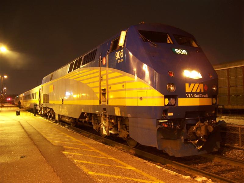 On the point of train #49 from Montreal, P42DC 906 waits at the Oshawa station as it leads 3 LRC coaches. A few passengers off, a few on, and this train will continue to Toronto's Union Station.