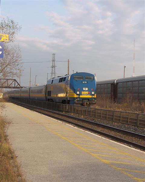 Leading train 61 with 5 LRC coaches at Oshawa running express. A last minute shot, it turned out pretty nice at 89MPH. I was shooting 64 at the station when I heard something behind me. I had just enough time to get the camera aimed, focused and shooting!