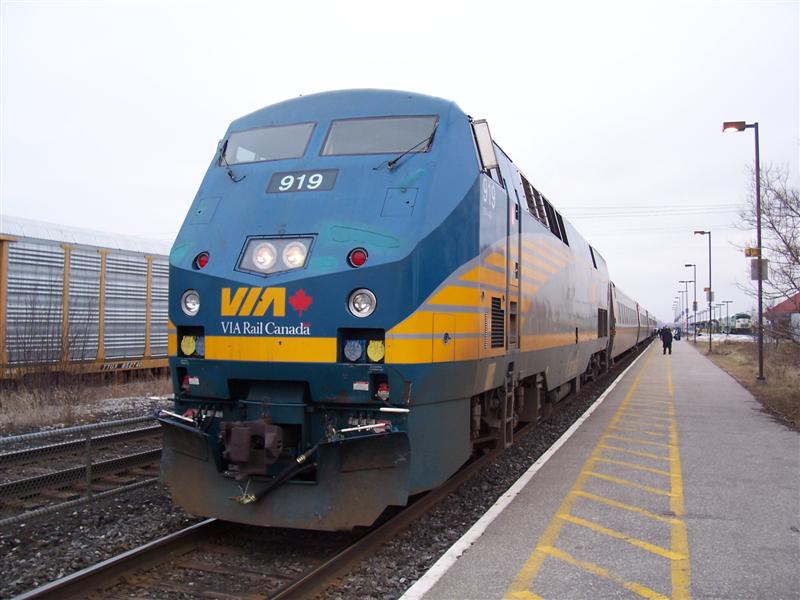 Leading train 64 with 5 LRC coaches at Oshawa. Note the repainted patches on the nose of this unit. Kind of sad for a unit a little over 4 years old.