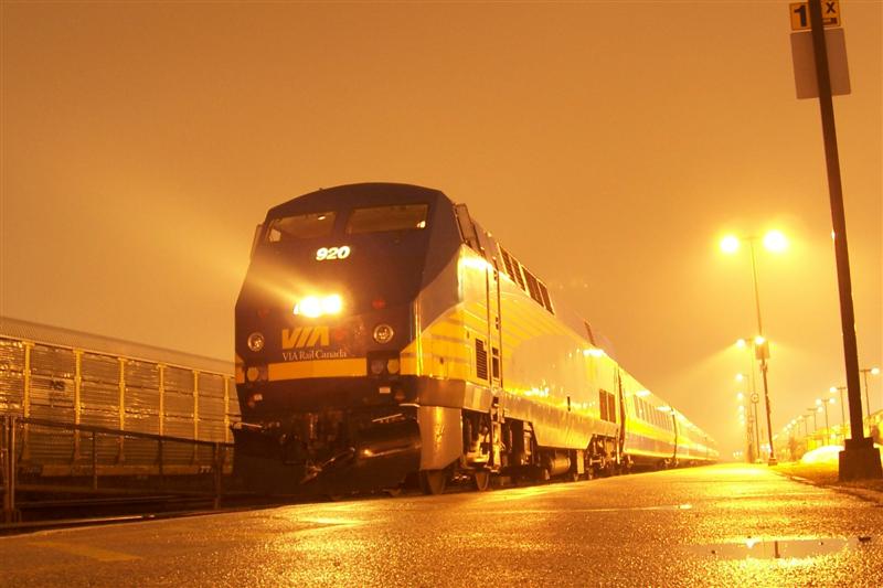 Leading train 48 with 5 LRC coaches at Oshawa. My first night shot! I got a little wet taking this!!