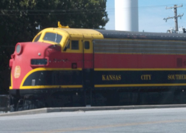 engine and caboose that belonged to the Kansas City Southern; it is