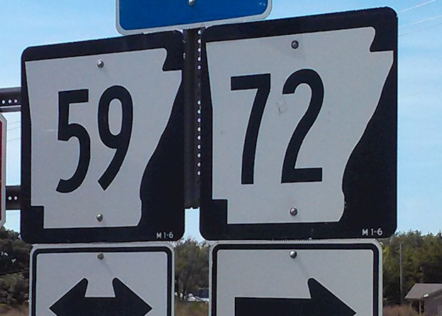 Arkansas State Highways 59 and 72 travel close to where Oklahoma, Arkansas, and Missouri come together