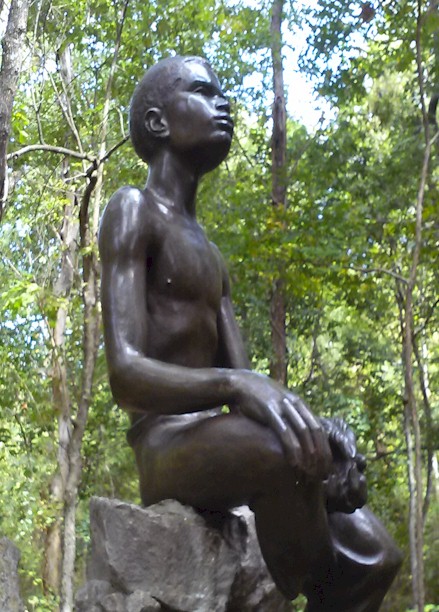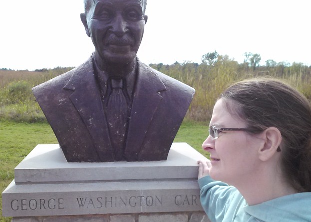 Kandace checks out a broze bust of George Washington Carver at the end of the nature trail