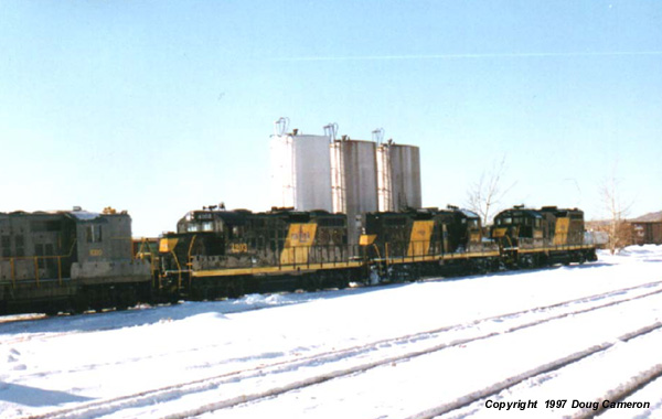 Cando Contracting GP9 1000 keeps 3 of the RaiLink former Southern Pacific GP9E's company in the Spring of 1997.