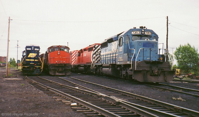 GATX Leasing SD40-2 7353 at North Bay alongside RaiLink's SD18 and HR412's