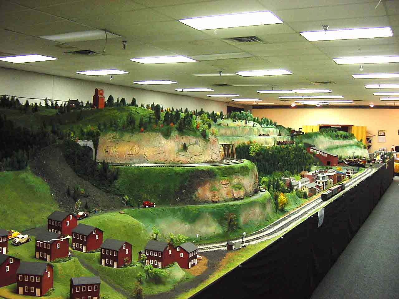 lower track is all 2-rail O gauge. Two loops at mid-level