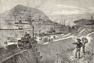 As possibly no other engineer could have, he devised an elaborate, yet ingeniously elastic system of trackage within the Cut whereby loaded trains would roll out on a downgrade and trains of empty cars would be constantly available to serve the steam shovels.
