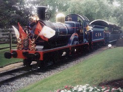 The 24" gauge engines were Crown's largest until they entered the 36" gauge market in the early 1970s. They are essentially a larger version of the 15" gauge locomotives. One of the most impressive examples of the 24" gauge Crown is Hershey Park's Dry Gulch RR. The small engines pull 4 and 5 car trains up some pretty steep hills, putting on a real show.