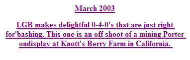 Details of our latest 'bashing projects are listed in detail on MyLargescale.com. Click on the