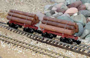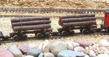 On the left are the out of the box Bachmann skeleton log cars. The right image shows the cars weathered
