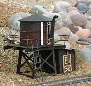 Water Tank. At the right shows the finished 'bashed tank with the scratch built and lighted crew shack along side. |