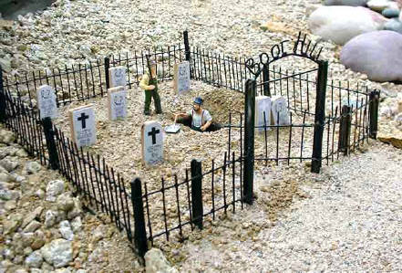 denied a proper place to be laid to rest. The townspeople approached the deacons in the church to see if a suitable place could be used on church property. The deacons brought the request to the congregation and they voted to donate land behind the church for "Boot Hill."