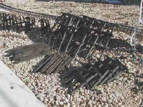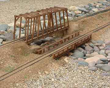 and timbers ready for the construction crew to place under the track and complete the trestle. |