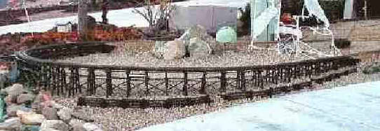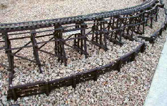 design and building of a long curved trestle. The image on the right shows the beginning of the "Thomas Robert Fallen" Trestle (named for grandson and pronounced Fal-en, not fallen). |