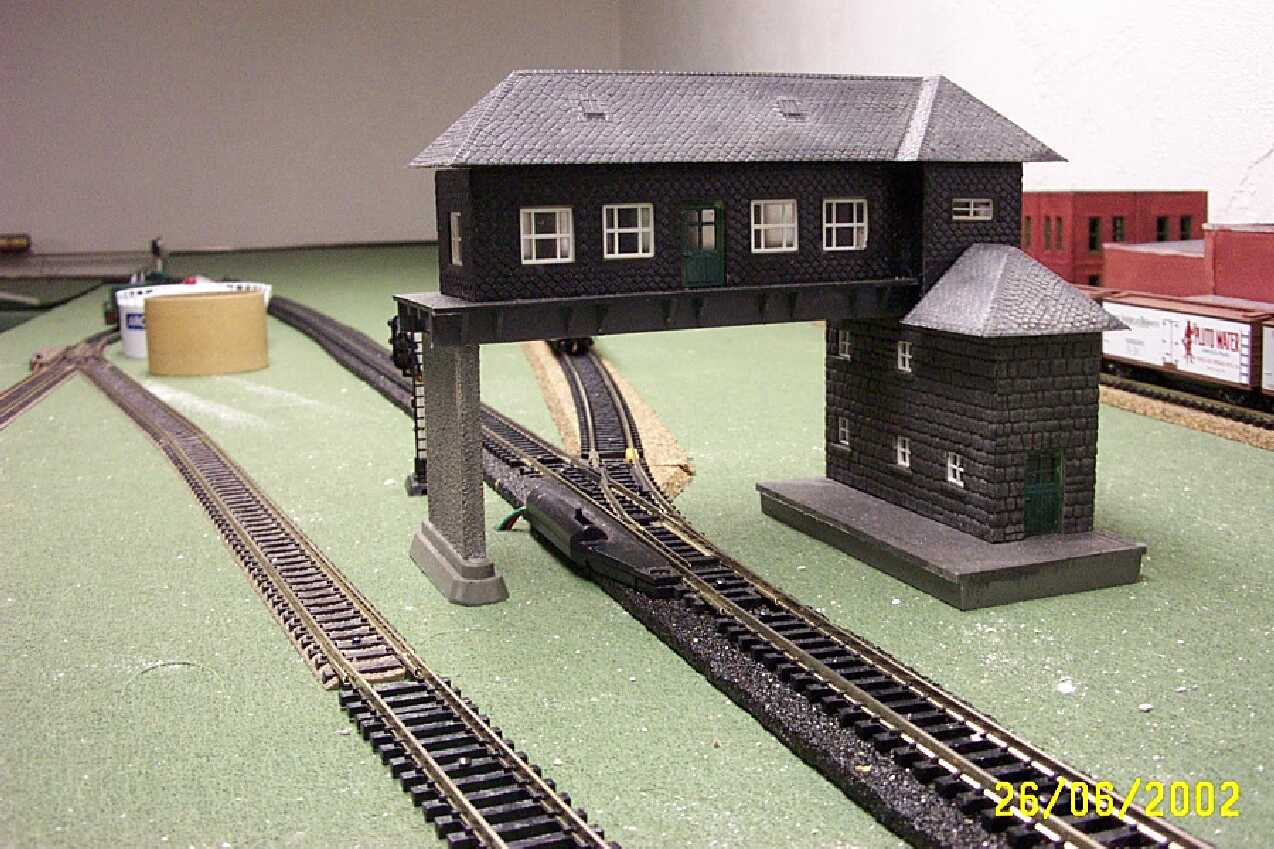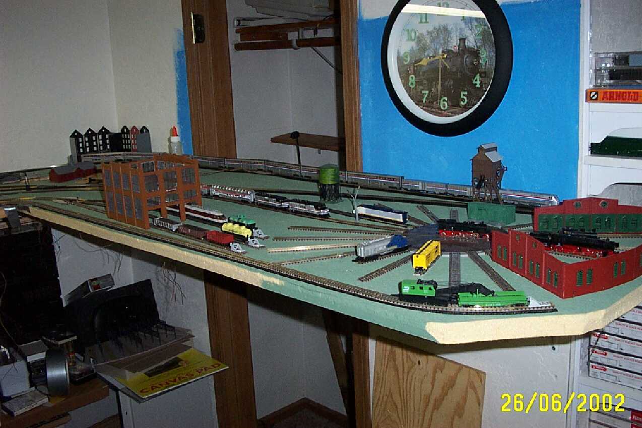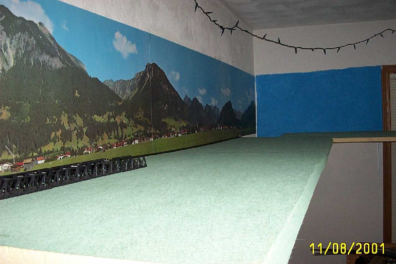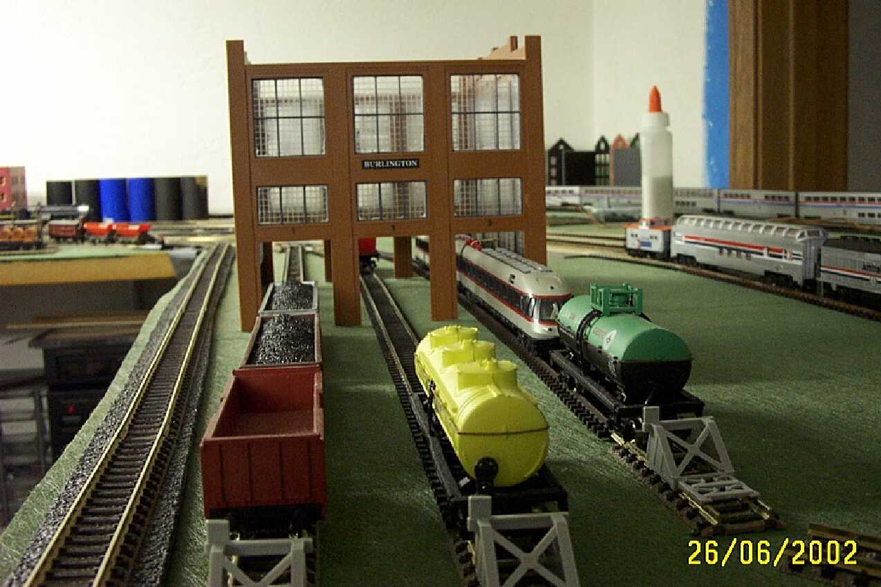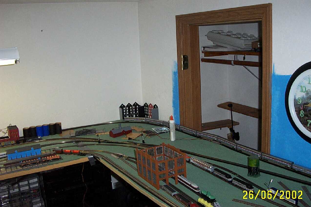 West wall close up Siding in foreground, Mainline in middle with the Troll Interchange Tower guarding the junction. This view is looking south about midway on the west wall.