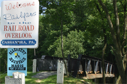 The Railfan Railroad Overlook in Cassandra is one of the premier railfan locations in Central Pennsylvania. The old bridge is visited by thousands of railfans from across the country each year. The small town atmosphere along with shaded benches and great photographic capabilities makes for a great time to be had by all. Rolling under the old iron bridge are approximately 60 Norfolk Southern trains a day. Amtrak also runs 2 trains over the 3 track mainline. Located at milepost 255.9, Cassandra is only miles away from such places as Lilly, Cresson, Gallitzin, and the world famous Horseshoe Curve. Make sure to check the table found further down the page for up coming events being held in Cassandra.