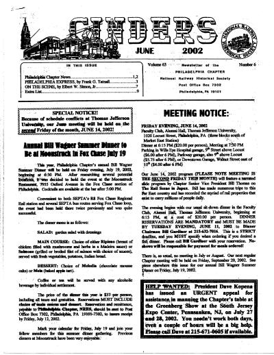 CINDERS is the newsletter of the Philadelphia Chapter of