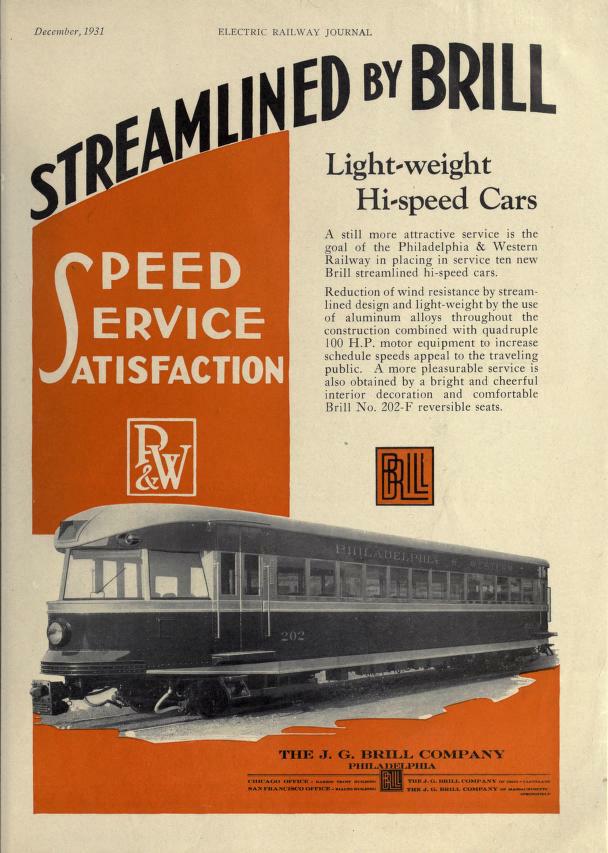 | Electric Railway Journal/J.G. Brill advertisement featuring P&W Brill Bullet 2002 | |