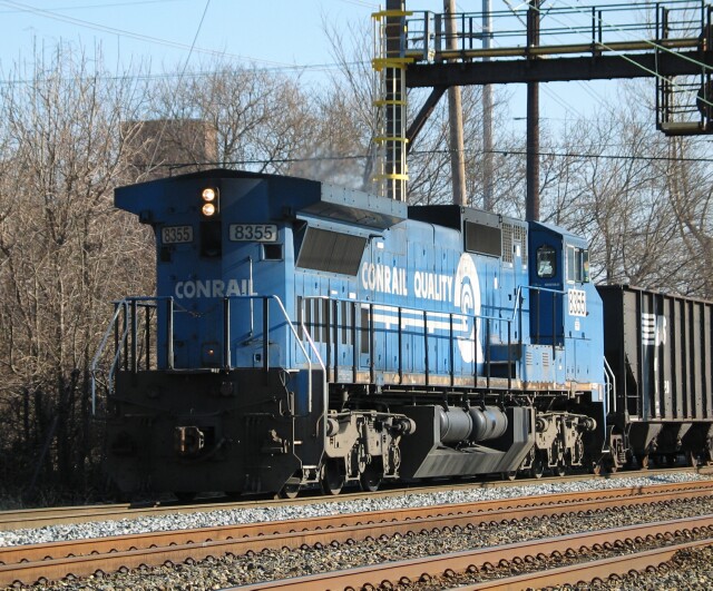 | Finally NS 505 rolls by with a former Conrail C40-8W running long hood forward as sole power pulling its load of NS and Conrail hoppers west. According to the dispatcher, they were going to yard the train at Abrams. | ||||||||||