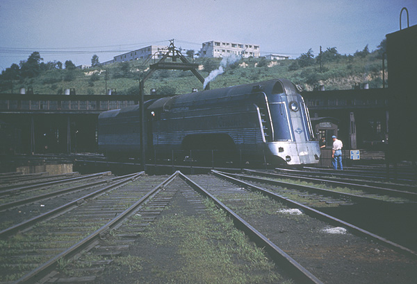 | I couldn't find my copy of the Charles Houser slide, but Albert Alecknavage found his and scanned it. Crusader engine #118 on the CNJ Bethlehem Engine Terminal turntable sometime in 1950. You wonder why he didn't shoot a whole roll ...... |