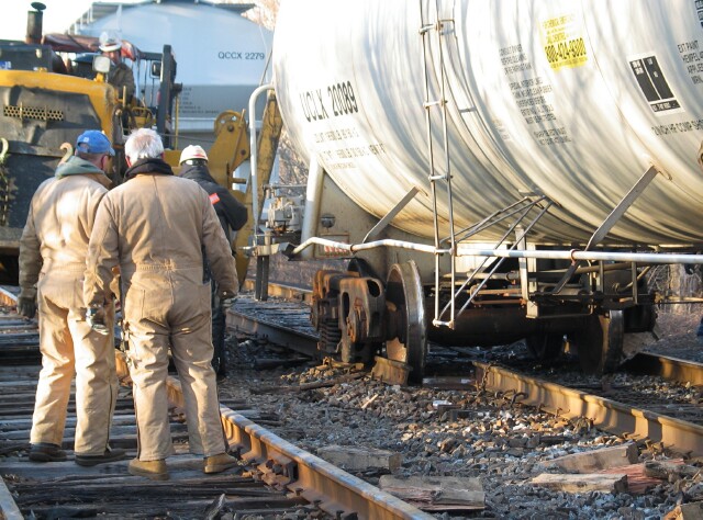 | The sidewinder walked the derailed truck of the tank car past the rail break. |