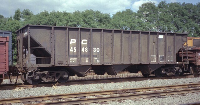 | This photo illustrates a method of identifying equipment heritage used by PC, with PC 454830 labeled P276494, the former PRR 276494. It also appears the ACI label had been bolted on the car and has since been removed. |