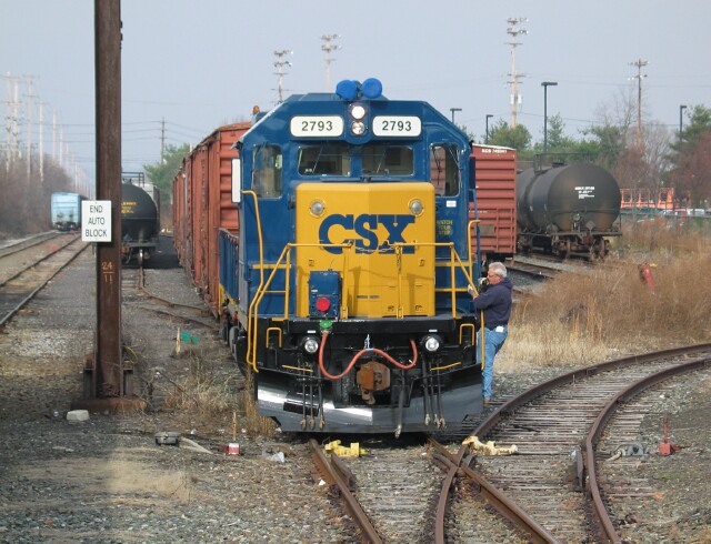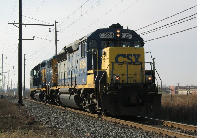 | Rarely does the CSX daylight local B738 wander onto SEPTA rails, so it was a surprise to see them running light passing the old American Olean tile factory. |