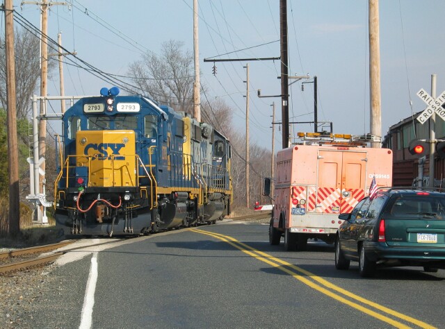 | The window for a freight to operate on the Doylestown Branch is between :40 after the hour (when the inbound SEPTA train passes CP Land) and :15 after the hour (when the outbound train arrives at Lansdale Station), during which they must go from Lansdale Yard to the warehouse, do their work, and hustle back. |