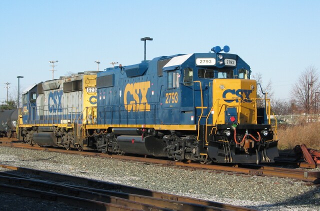| alongside the C746 power, CSX SD40-2 8842 (with third rail plow) and 8825. |