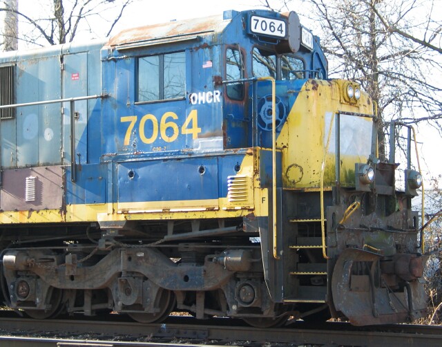 | I don't believe that 7064 ever wore any NHIR markings, but it has now been stenciled for its new owner OHCR. All CSX markings have been obliterated, but the CSX-applied United States flag still flies (albeit in the wrong orientation for a moving vehicle). |