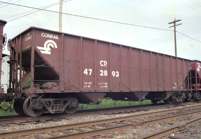| Conrail coal hopper 489932 class H1C is an original Conrail car, and it shows. |