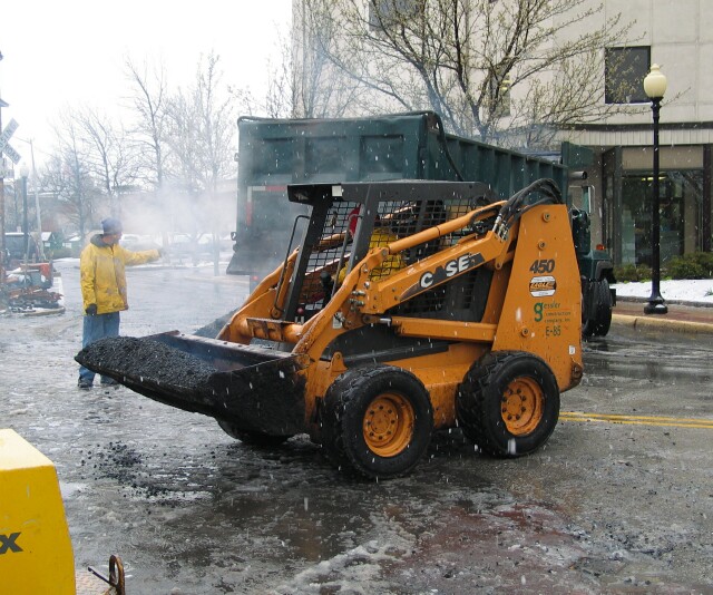 | and it is immediately scooped up by the Bobcat which dumps it in the holes ..... |