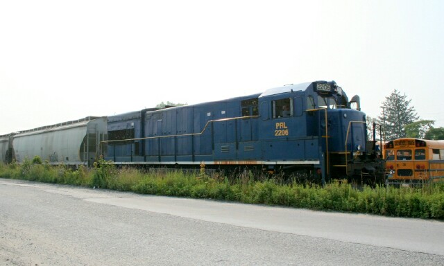 | On a very hot Tuesday, July 10, at 9am, #2206 was back on her usual run, in Kennett Square, pulling loads west from Chadds Ford Junction. |