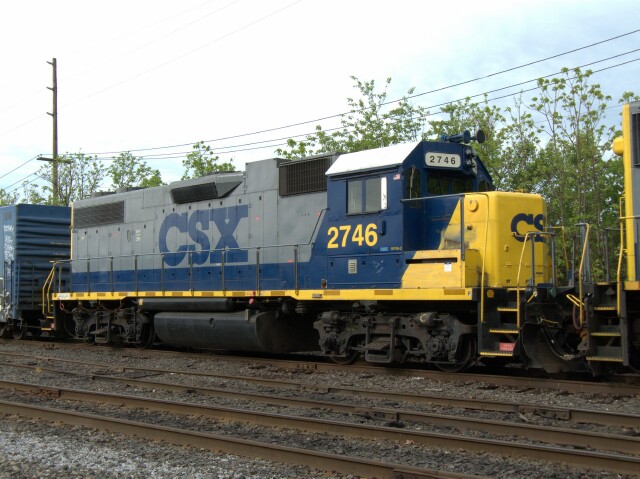 | As if unusual were the theme, the second unit was CSX GP38-2 2746 but facing north as well as 8728, requiring C746 to run long hood forward into town. |