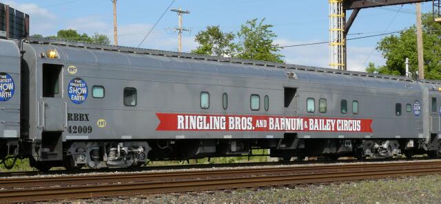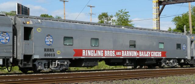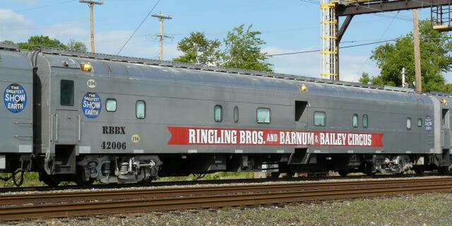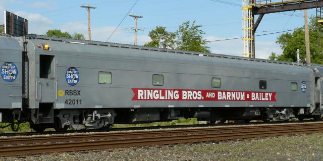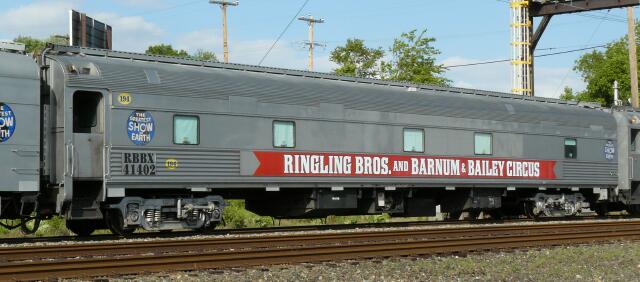 The Ringling Brothers and Barnum & Bailey Circus Blue Unit - one car at a time with car information verified by Rhett Coates of Circus Train Yahoogroup and gleaned from various sources including 1999 RBBX Car Roster and UP Passenger Car Roster . |